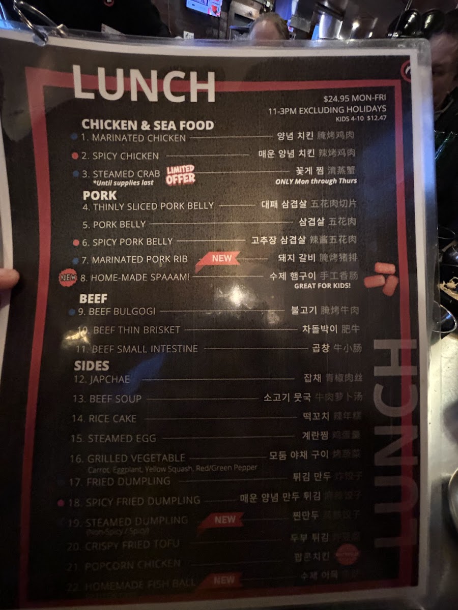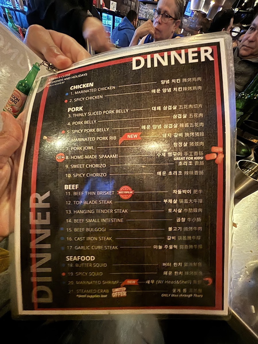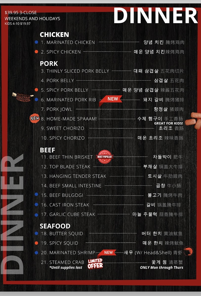 Regular size - top blade served with rice, kimchi and special soy sauce with chayote, jalapeño combo menu - top blade served with rice and beef soup, 2 fried dumplings, cabbage salad, kimchi, special soy sauce with chayote and jalapeno.