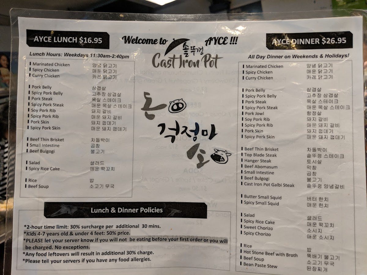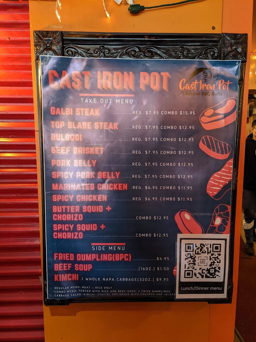 Regular size - beef brisket served with rice, kimchi and special soy sauce with chayote, jalapeño combo menu - beef brisket served with rice and beef soup, 2 fried dumplings, cabbage salad, kimchi, special soy sauce with chayote and jalapeno.
